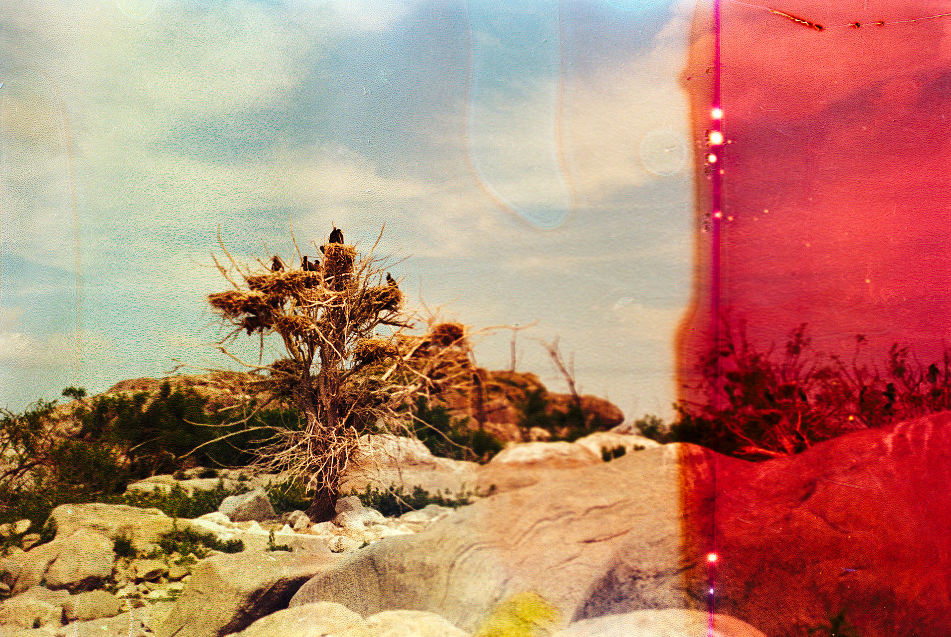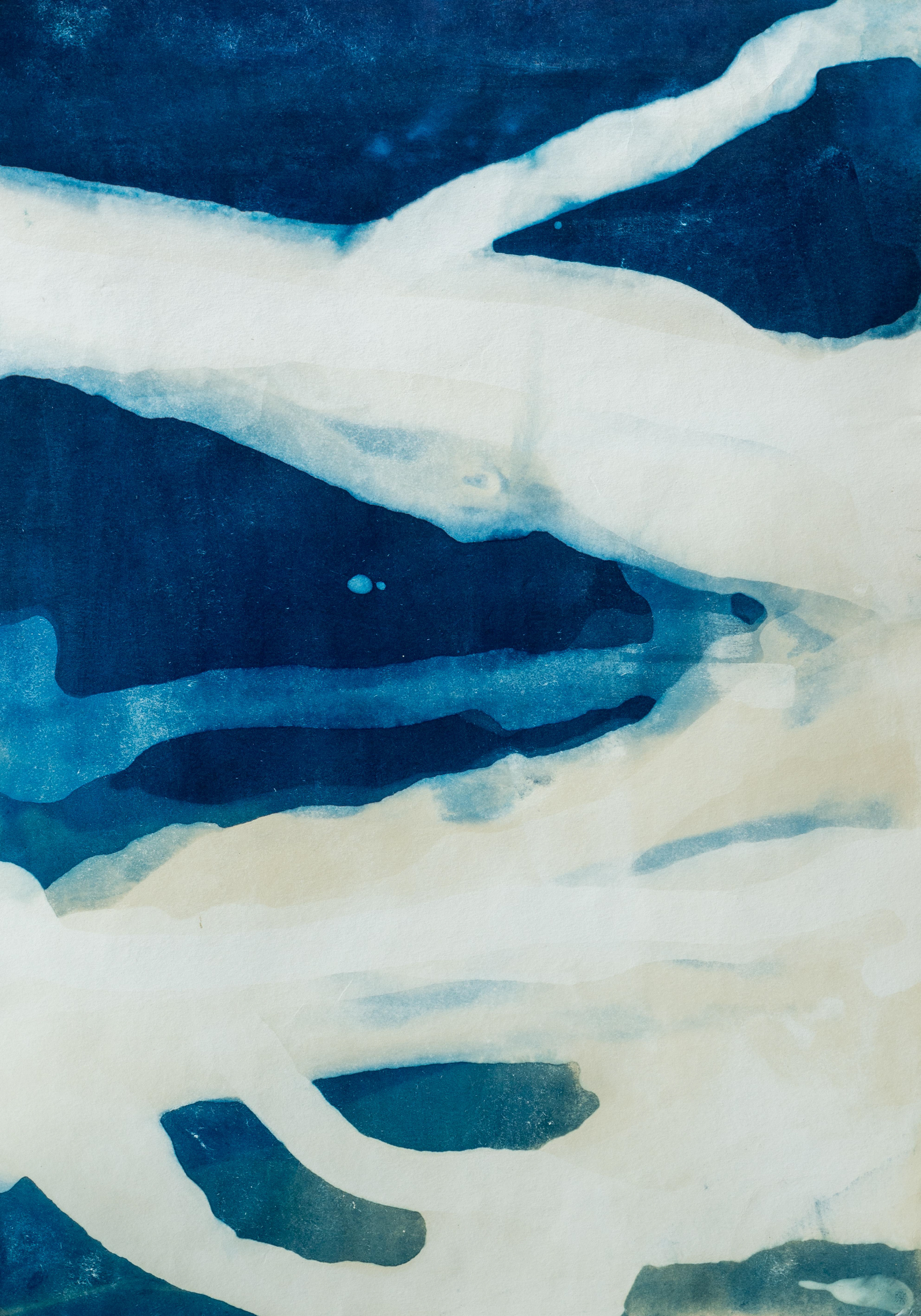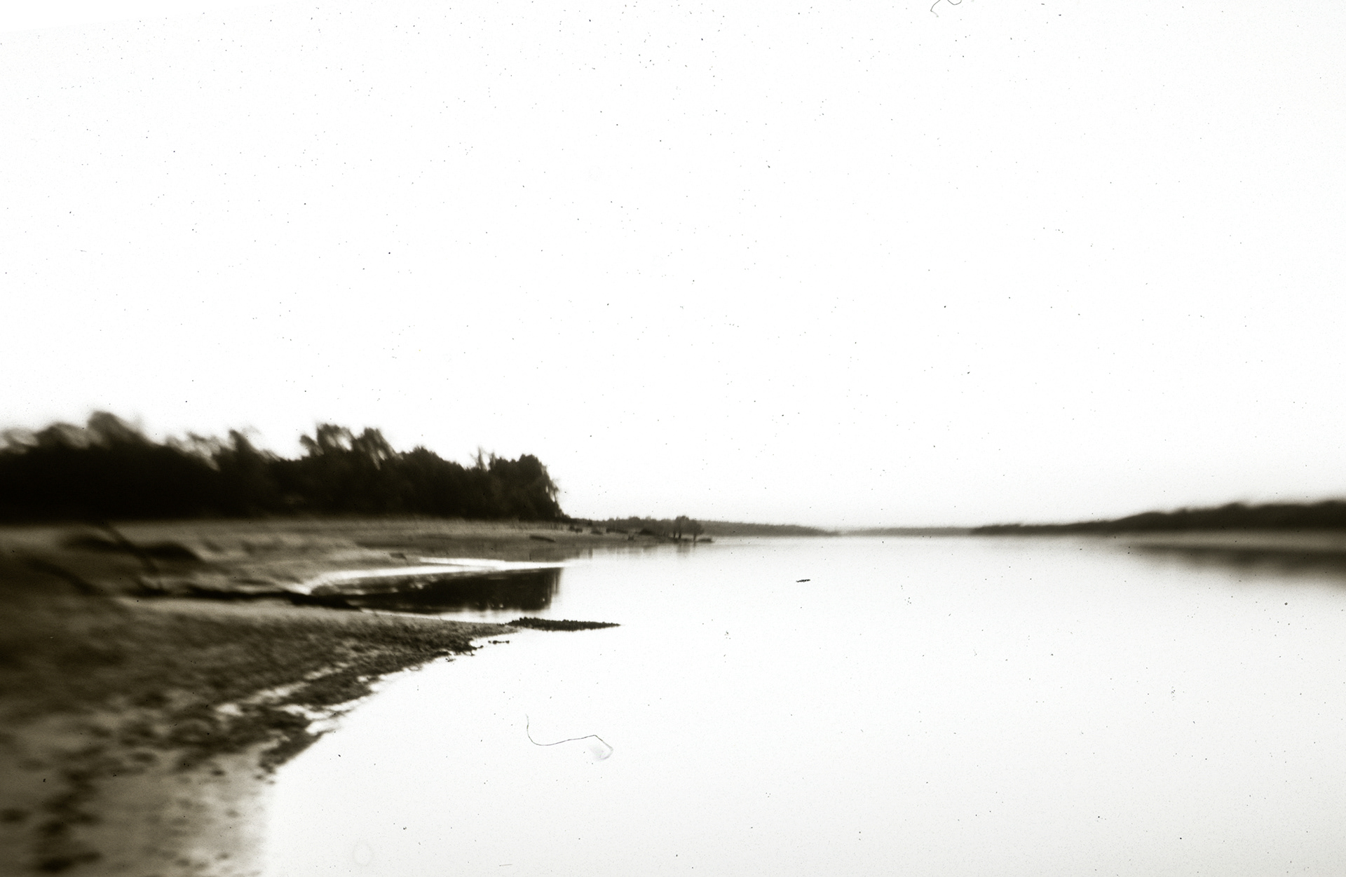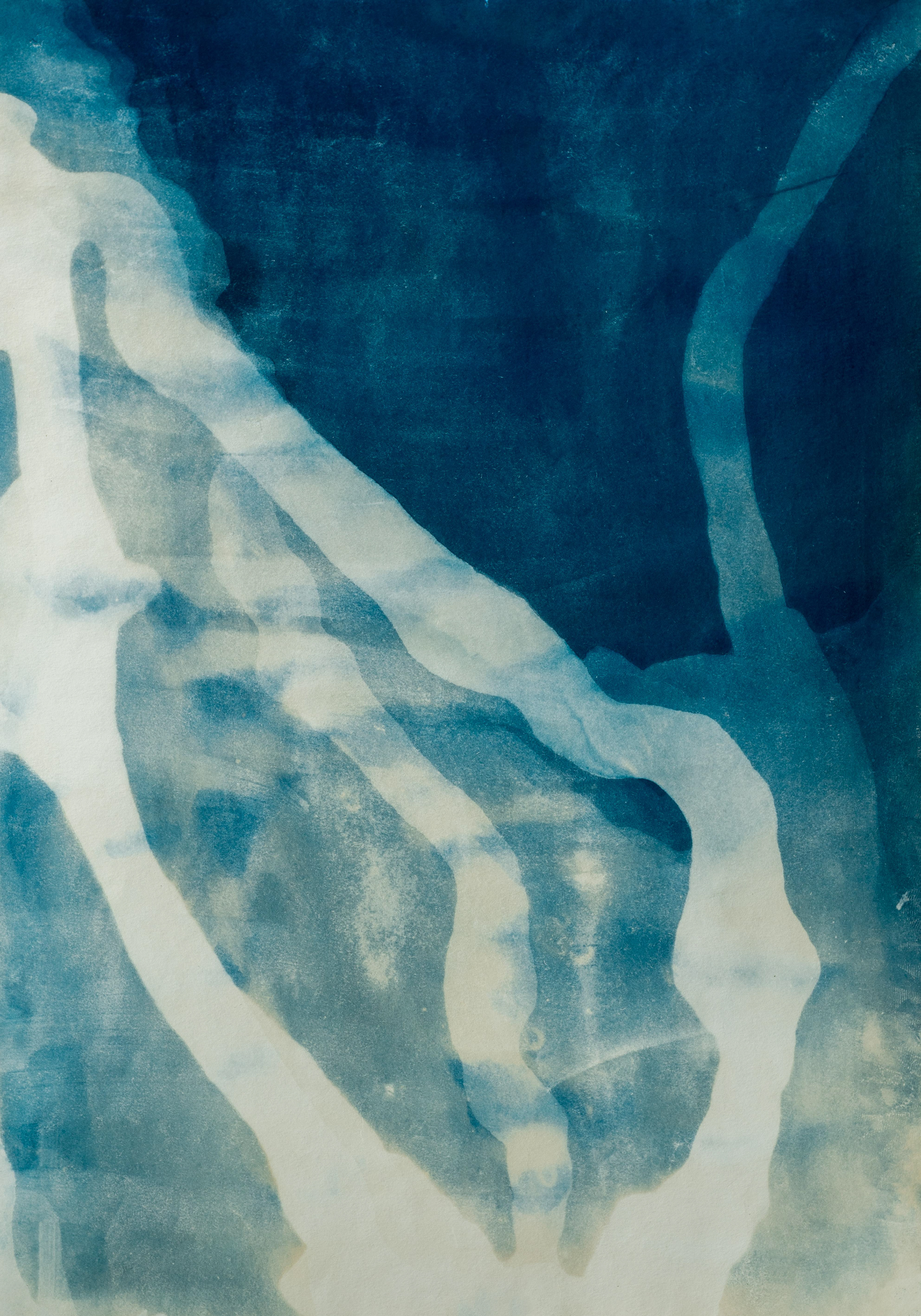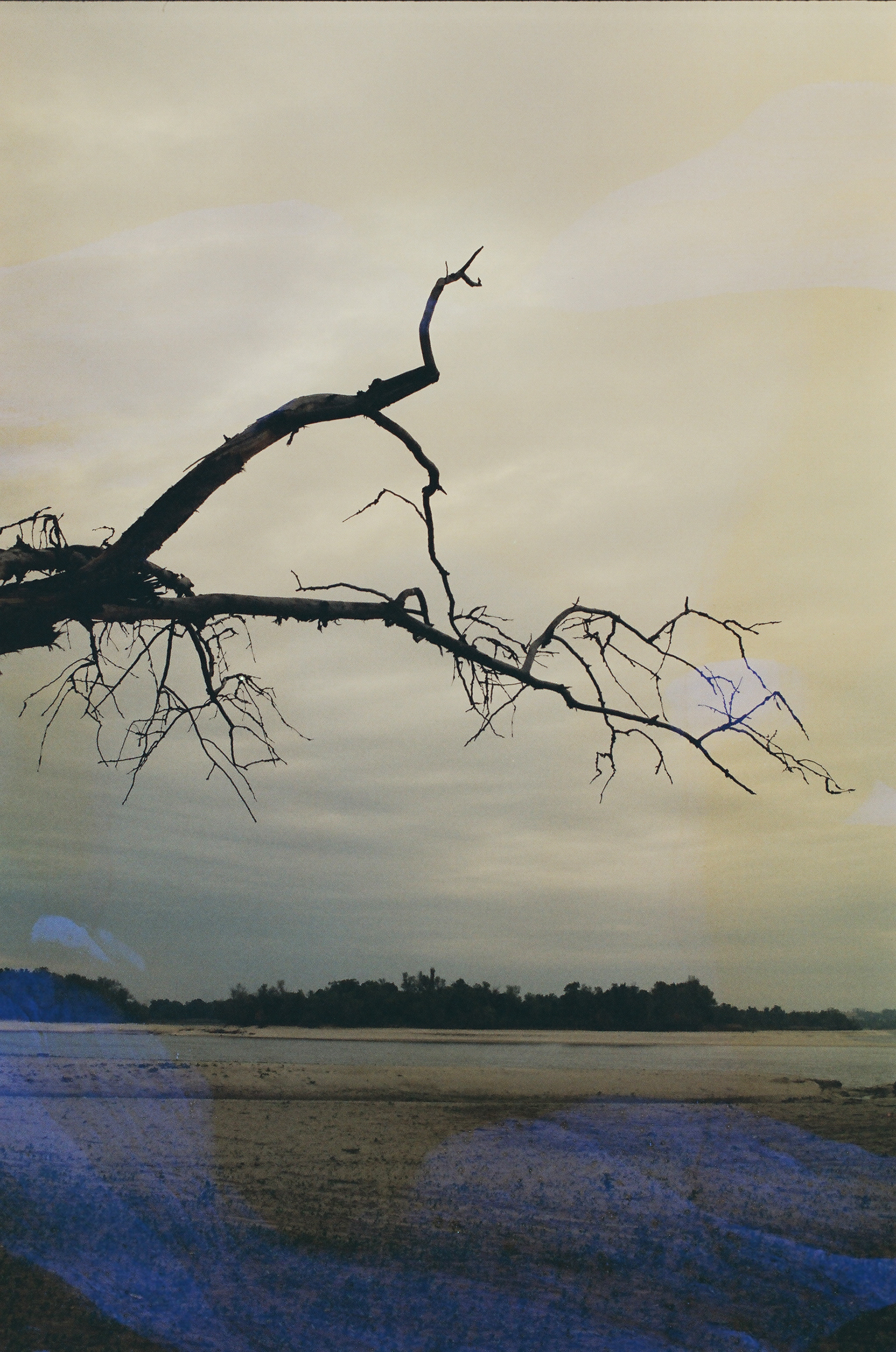 The work combines black-and-white film, cyanotypes made with river algae and reeds, and color films soaked in Dnipro water, allowing the river itself to leave its imprint. As the full ecological consequences remain unknown, this series is an open-ended exploration, bearing witness to an environment in flux.